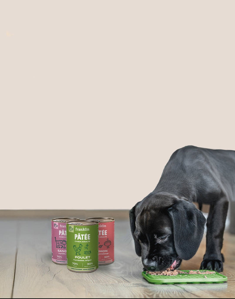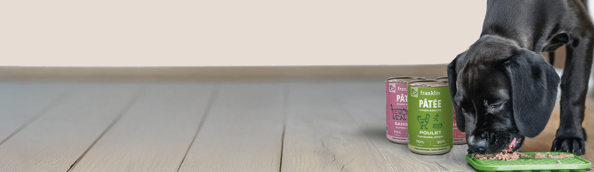 Nos pâtées sont adaptées aux chiots, aux chiens adultes et aux chiens seniors.