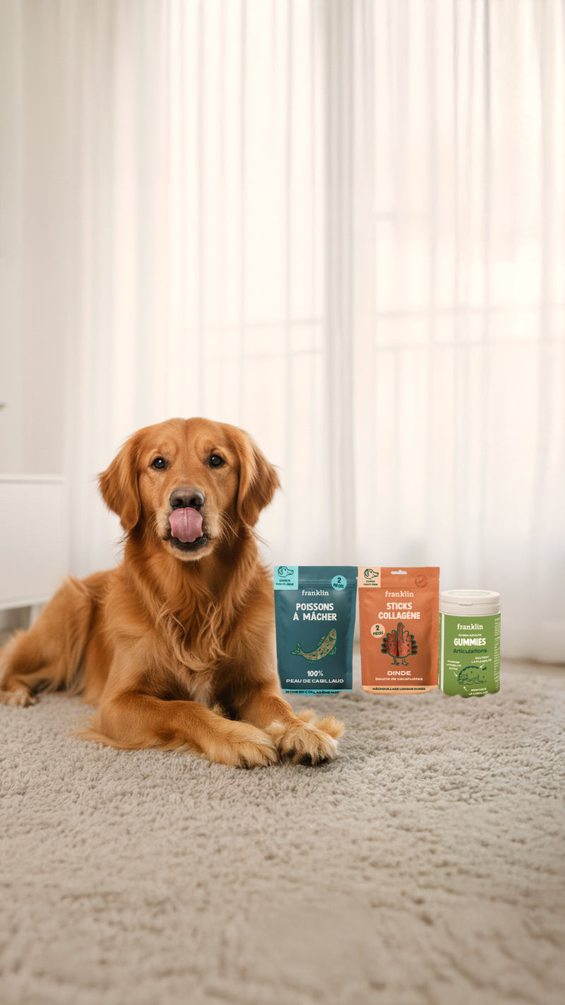 Franklin utilise du collagène ciblé, associé à peu d’ingrédients, sans additifs superflus. La formulation est pensée pour une haute digestibilité et une efficacité réelle.