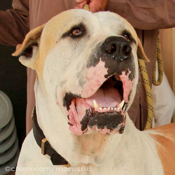 Son pelage, court et double, peut varier des nuances de brun à gris, souvent avec des marques distinctes. L’une des particularités de l’Alangu Mastiff est sa peau, plus lâche que chez les autres races de chien. Cette caractéristique lui aurait permis de résister aux blessures profondes.