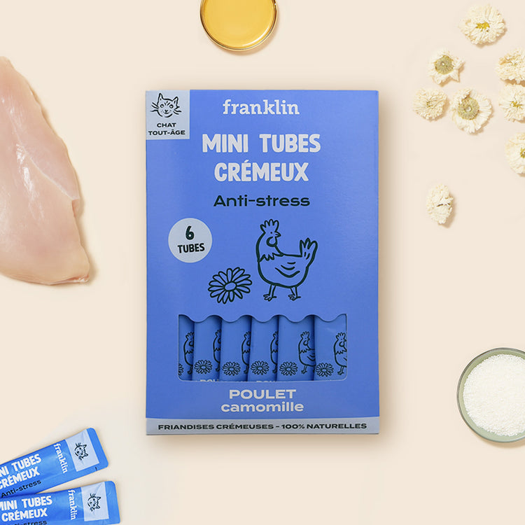 MINI TUBES CRÉMEUX POULET, CAMOMILLE Friandises anti-stress chat